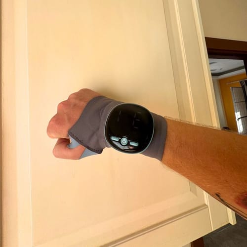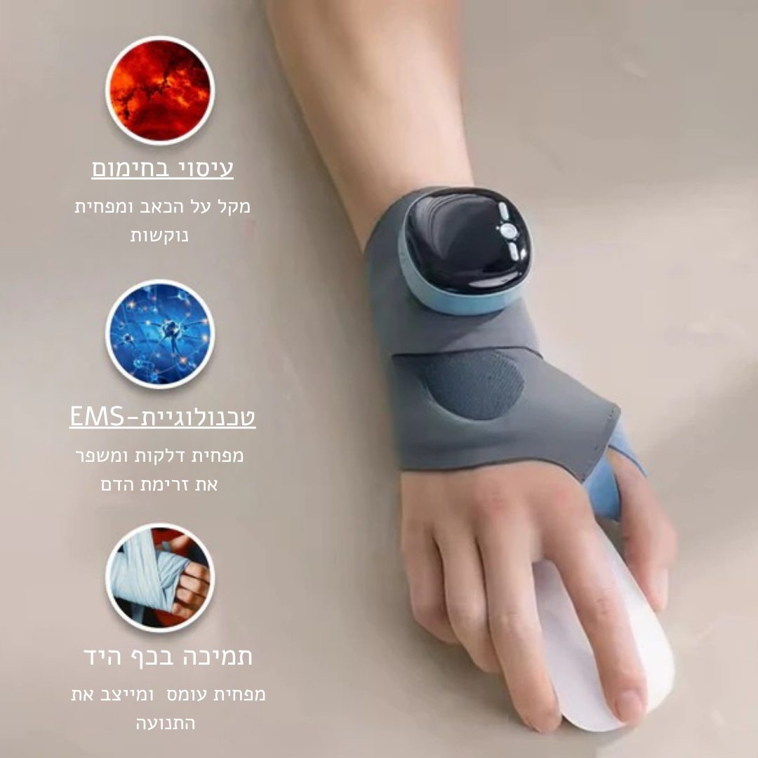 המכשיר מתאים לידיים שהיקפן עד 18 ס"מ. הרצועות המתכווננות שלו מאפשרות התאמה מדויקת ונוחה לרוב המשתמשים. לקבלת התוצאות הטובות ביותר, מדדו את היקף כף היד שלכם מתחת למפרק (ללא סרגל) לפני הרכישה.
